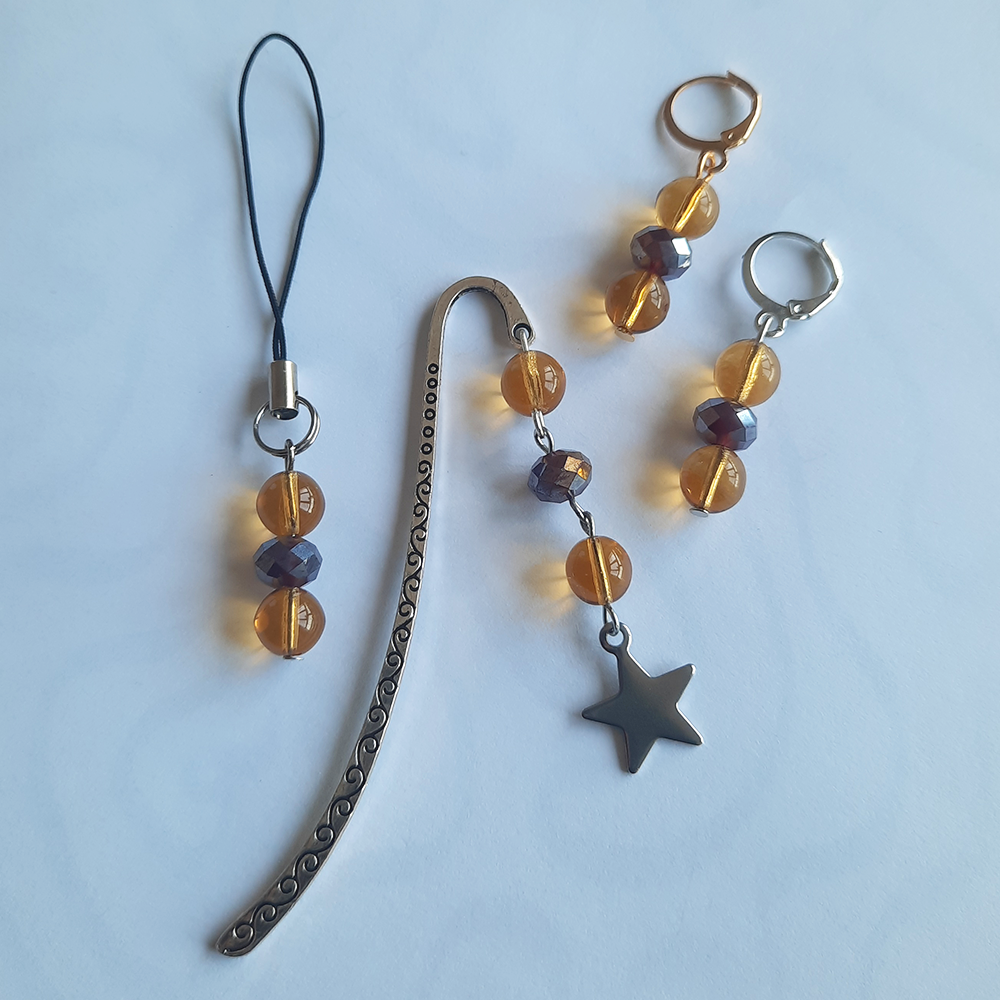 Modèles disponibles : monoboucle, paire de boucles d'oreilles, marque-page et bijou de téléphone.