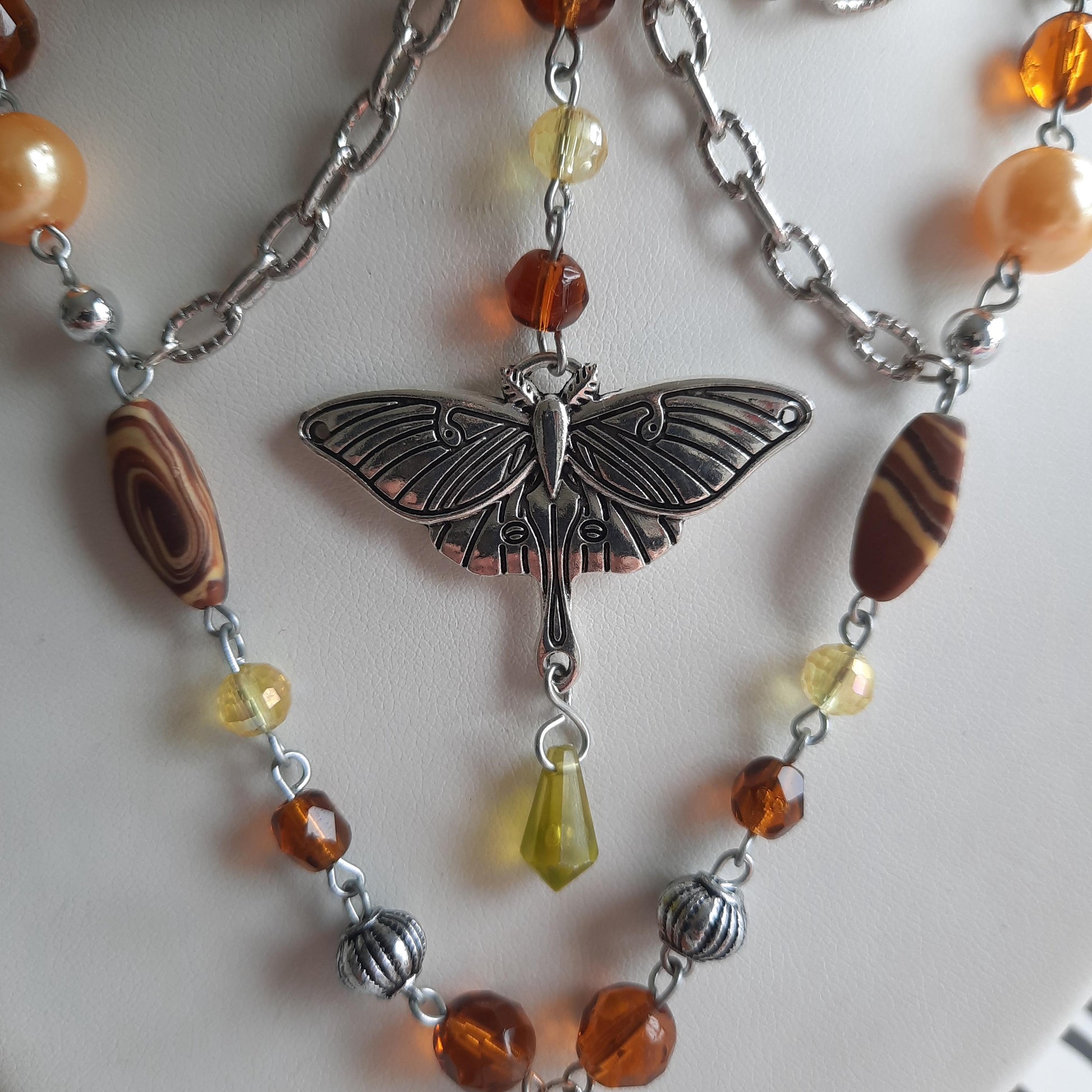 Maximaliste, audacieux, irrésistiblement original — le collier "Papillon de Nuit" est une pièce unique. Sa palette jaune, ambrée et marron évoque la nature, le calme et les papillons.