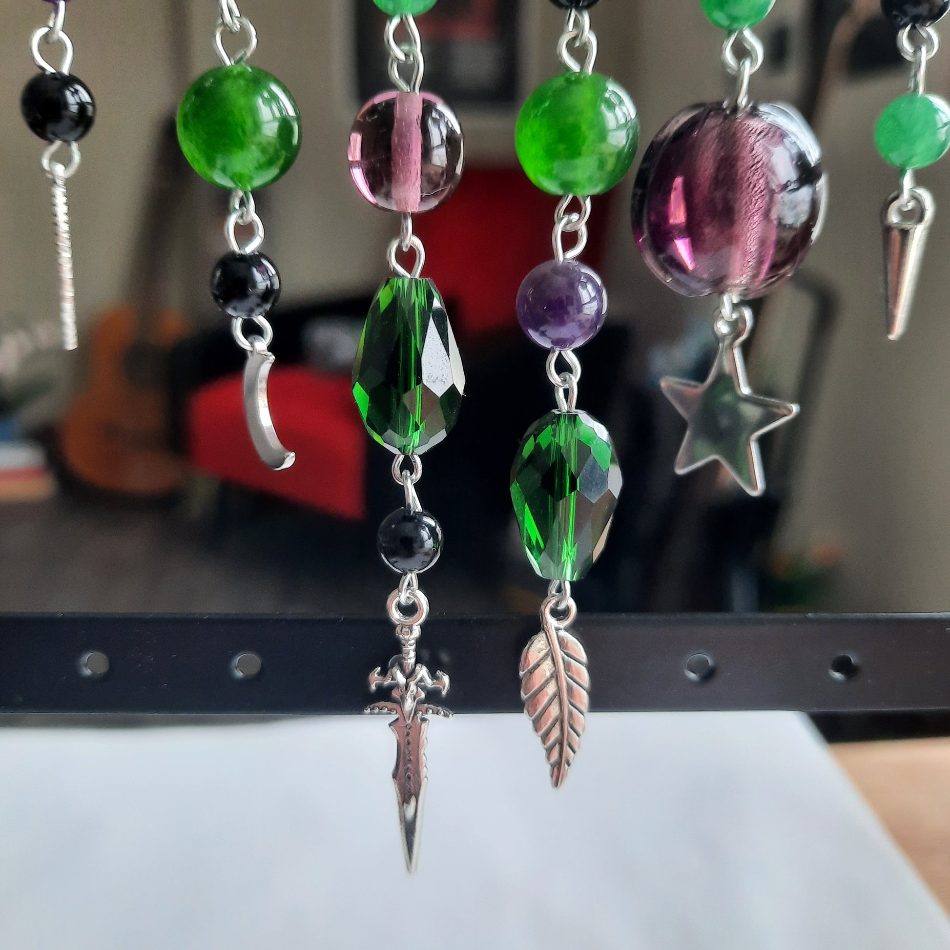 Perles de verre, acrylique, chaîne en acier inoxydable, pendentifs et apprêts en acier inoxydable